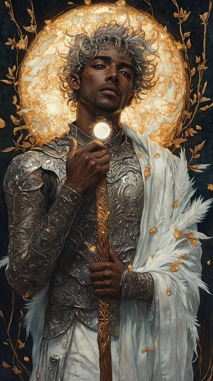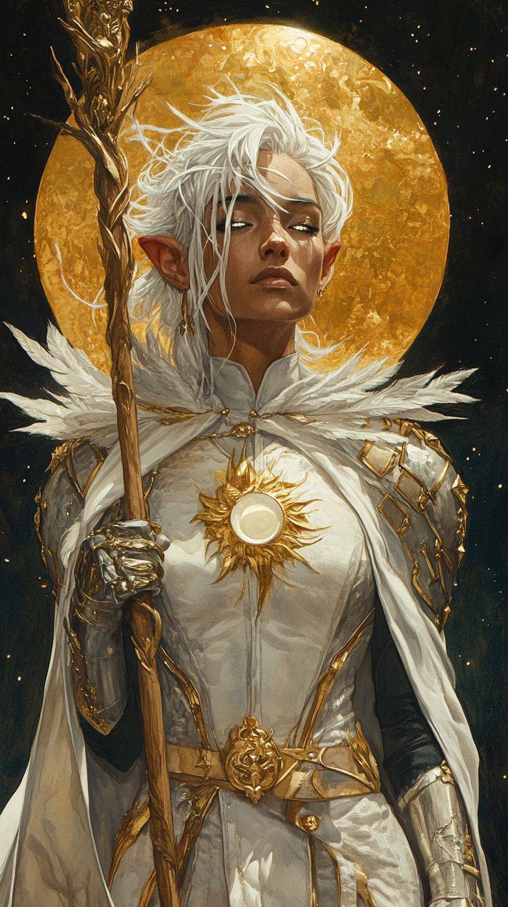 Vzhled a symbolika: Sol je zobrazován jako mladý válečník v nádherné stříbrné zbroji, která je zdobená zlatými a stříbrnými motivy. Na hlavě má korunu ze světla, která symbolizuje jeho moc. V jedné ruce drží hůl s malým, zářivým sluncem, které je zdrojem veškeré síly. Jeho oblečení je z bílých, zářivých látek a je protkáno zlatými nitěmi.